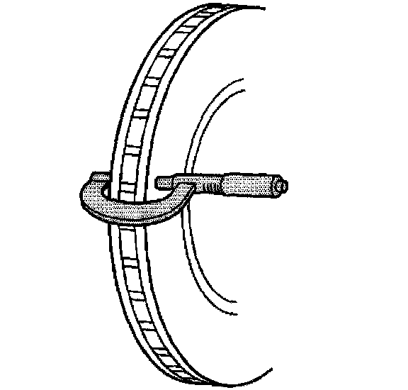 5. Using a micrometer calibrated in thousandths-of-a-millimeter, or ten-thousandths-of-an-inch, measure and record the scoring depth of any grooves present on the rotor friction surfaces.