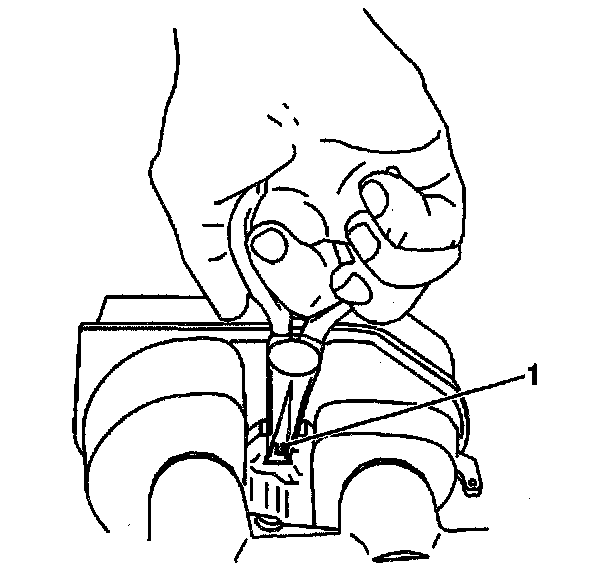 3. Remove the brake fluid level sensor. Using needle nose pliers, carefully depress the retaining tabs on the end of the brake fluid level sensor (1) and press the sensor through the reservoir to remove.