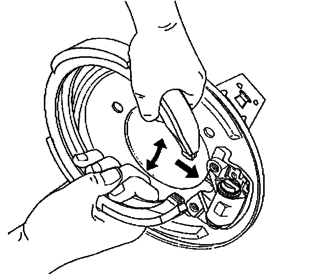 5. Install the park brake shoe assembly by grasping the shoe and spreading slightly while pulling the shoe over the actuator assembly.