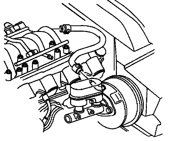 1. Disconnect the brake booster vacuum hose from the brake booster vacuum check valve.