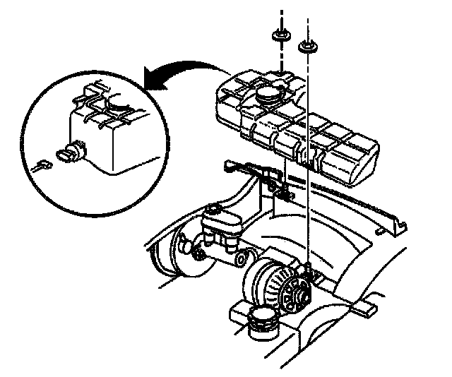 13. Install the washer solvent container retaining nuts.