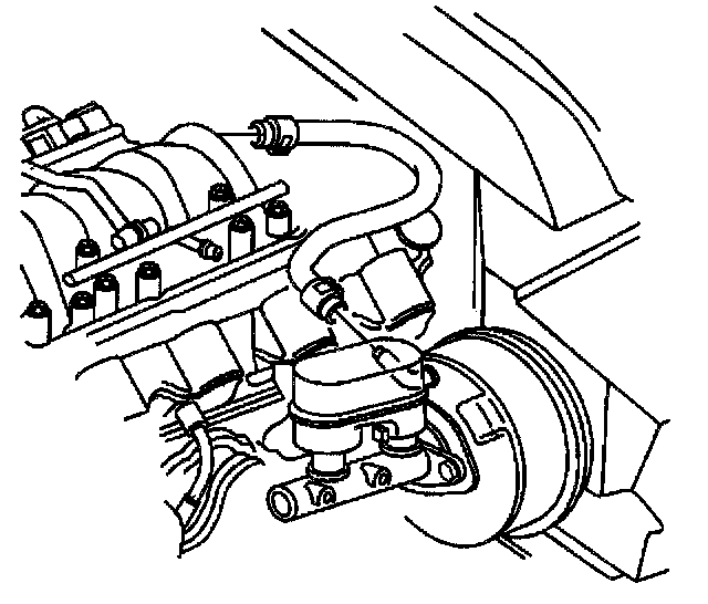 9. Disconnect the brake booster vacuum hose from the booster check valve.