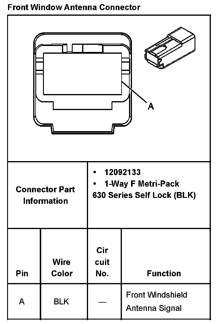 Front Window Antenna Connector: