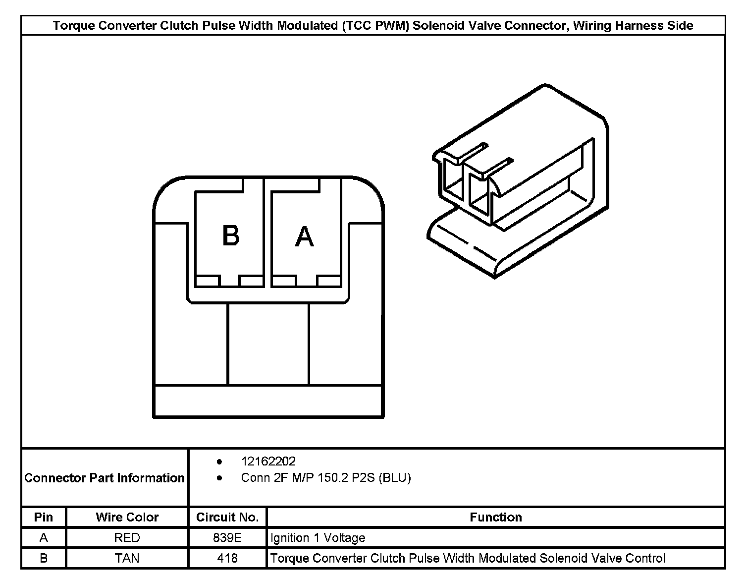 Automatic Transmission Internal Connector End ViewsTorque Converter Clutch Pulse Width Modulated (TCC PWM) Solenoid Valve Connector, Wiring Harness Side