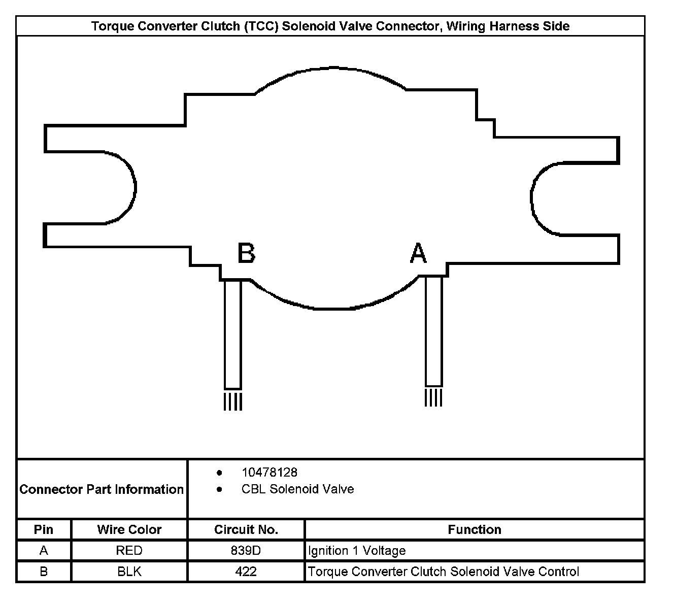 Torque Converter Clutch (TCC) Solenoid Valve Connector, Wiring Harness Side