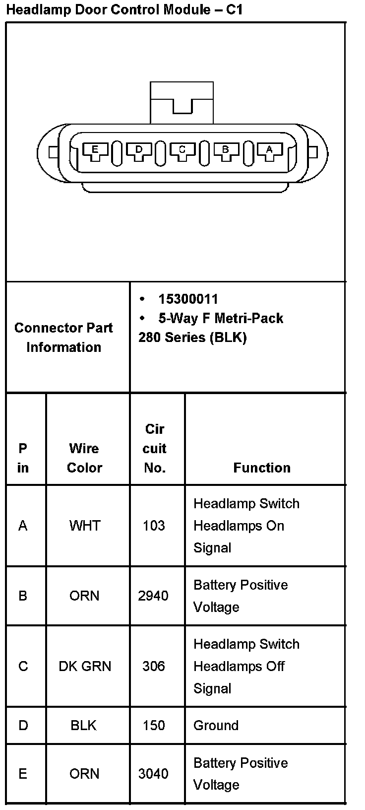 Headlamp Door Control Module - C1: