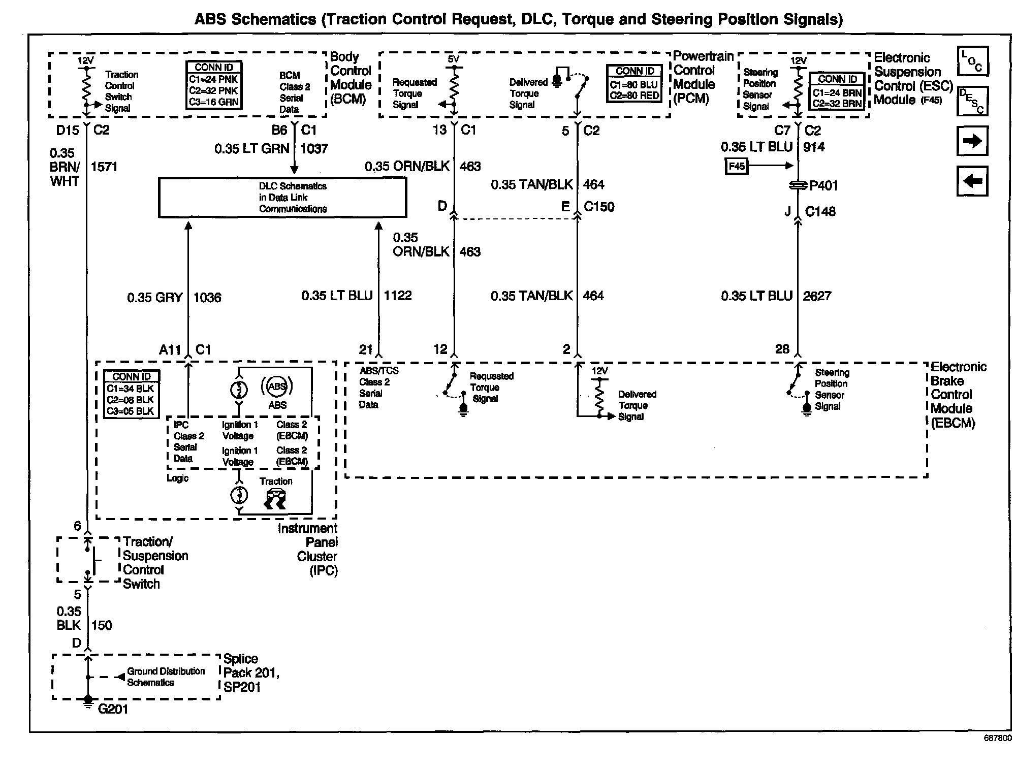ABS Schematics: Traction Control Request, DLC, Torque And Steering Position Signals:
