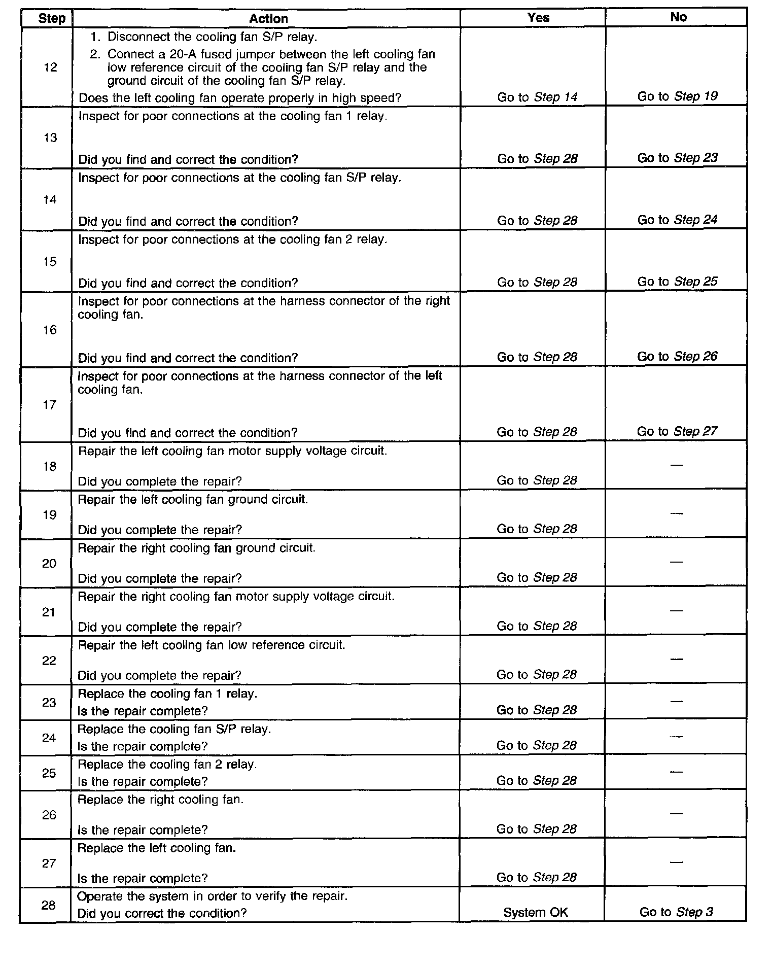 Cooling Fan Inoperative