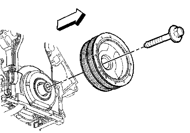 ^ For manual transmission applications, note the position of the crankshaft balancer before removal. The balancer does not use a key or keyway for positioning. Mark or scribe the end of the crankshaft and the balancer before component removal. The crankshaft balancer must be reinstalled to the original position.