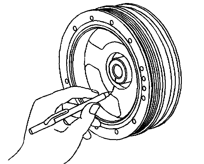 3. Mark or scribe the crankshaft balancer and the end of the crankshaft.