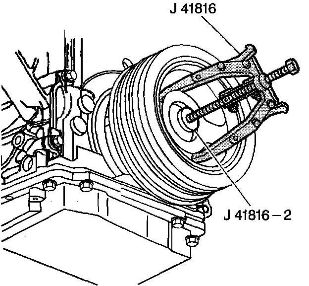 4. Use the J41816 and the J41816-2 in order to remove the crankshaft balancer.