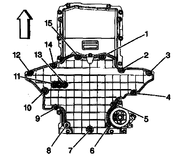 4. Remove the oil pan - lower- bolts (1-15), if required.