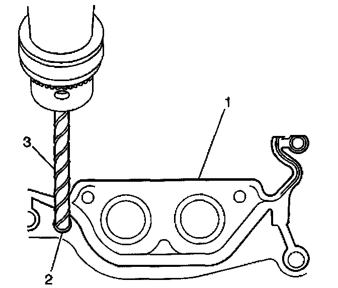 9. Drill (3) out the oil pan gasket retaining rivets (2), if required.