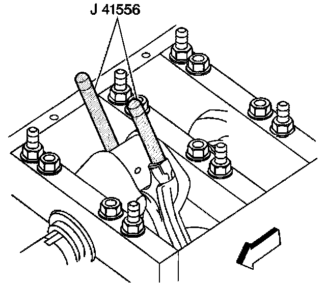 5. Use a hammer and tap lightly on the end of the J41556 in order to remove the piston and connecting rod assembly from the cylinder bore.