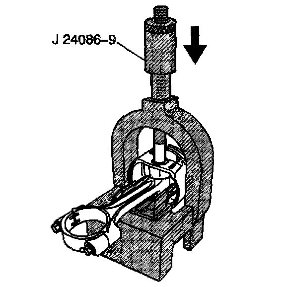6. Insert pin J24086-9 through fixture J24086-10 and to the piston pin.