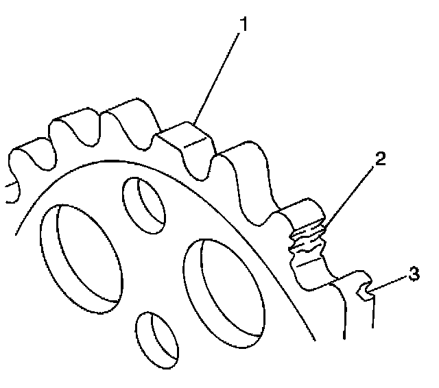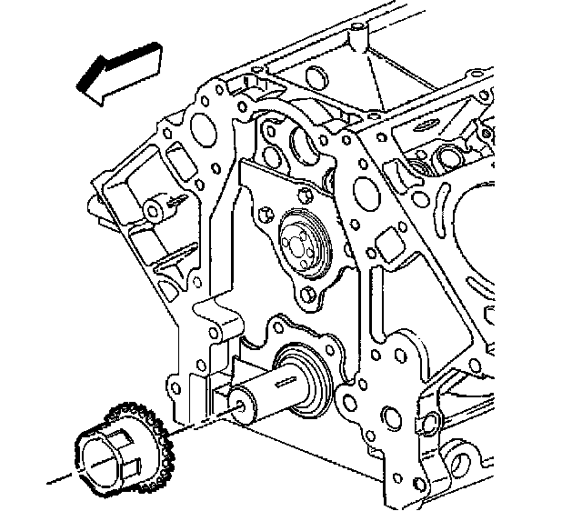 6. Inspect the crankshaft sprocket oil pump drive splines for wear.