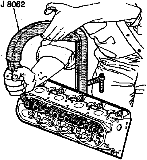 2. Use the J8062 in order to compress the valve spring.