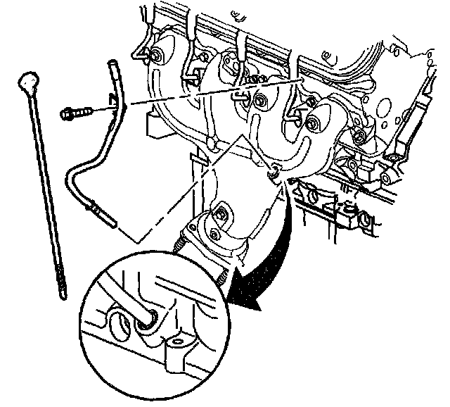 3. Remove the oil level indicator tube from the engine block.