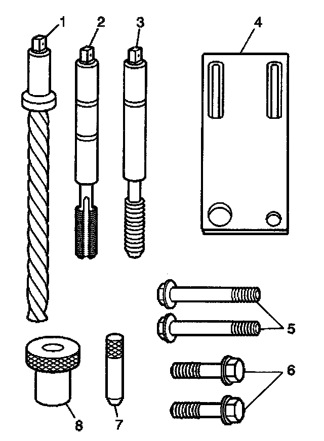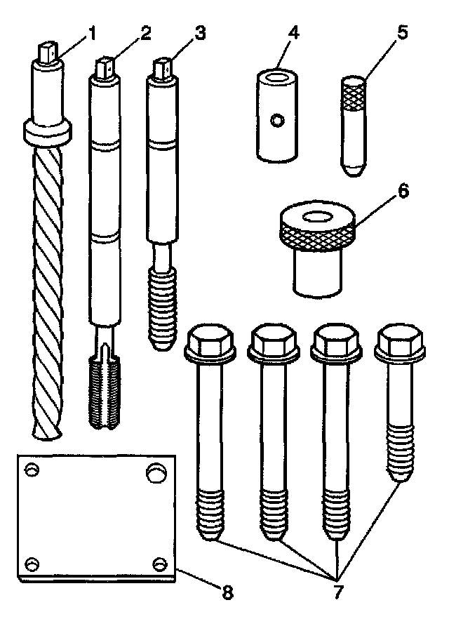 Important: The use of a cutting type fluid GM P/N United States 1052864, GM P/N Canada 992881, WD 40, or equivalent is recommended when performing the drilling and tapping procedures.