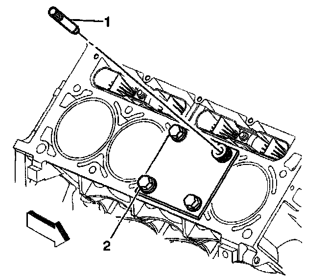 2. Install the fixture plate (3), bolts (1), and bushing (2) onto the engine block deck.