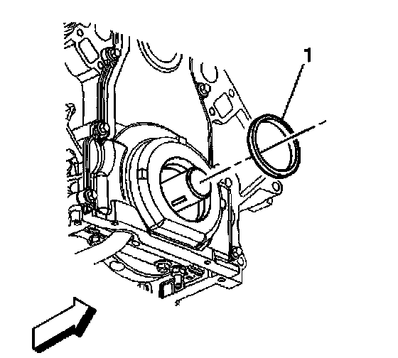 ^ Inspect the oil seal for proper installation. The oil seal should be installed evenly and completely into the front cover bore.