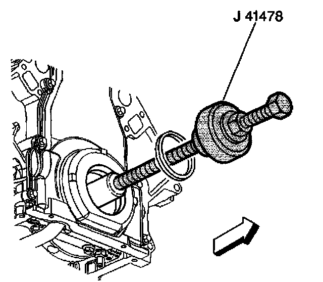 11. Install the crankshaft front oil seal into the J41478 guide.