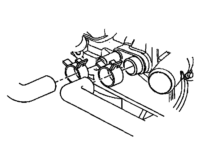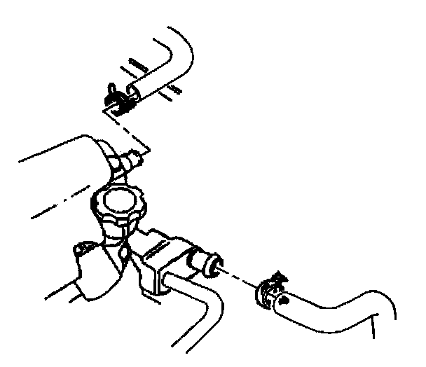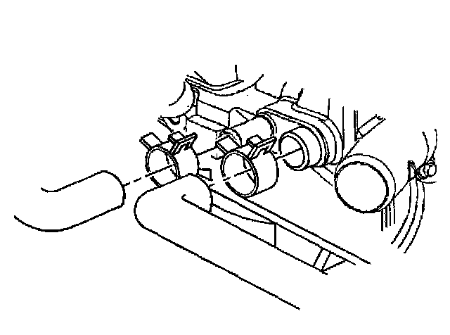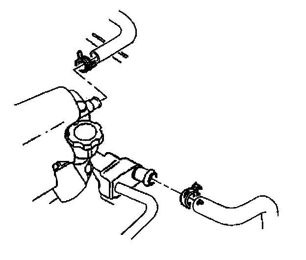 6. Reposition the heater inlet and surge tank outlet hose clamps at the water pump.