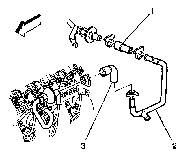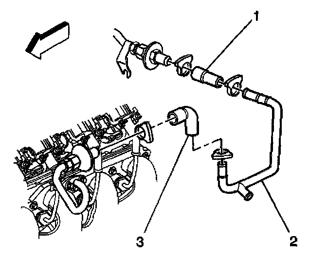 14. Remove the AIR injection pipe hose (3) from the left check valve.