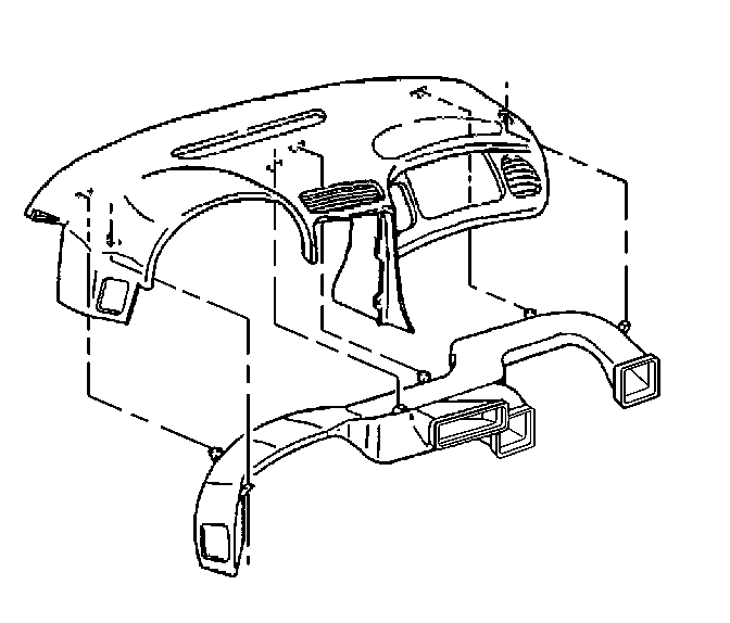 2. Remove the screws retaining the air distribution duct to the underside of the upper trim pad.