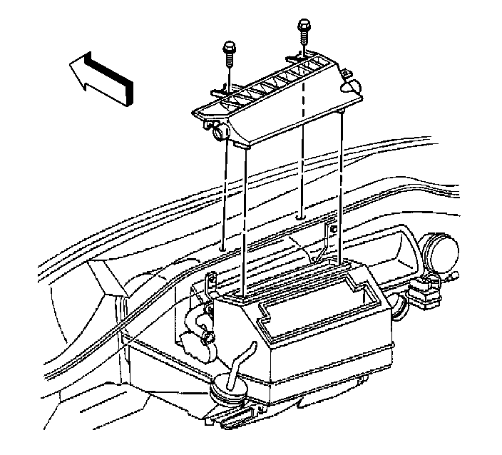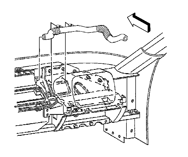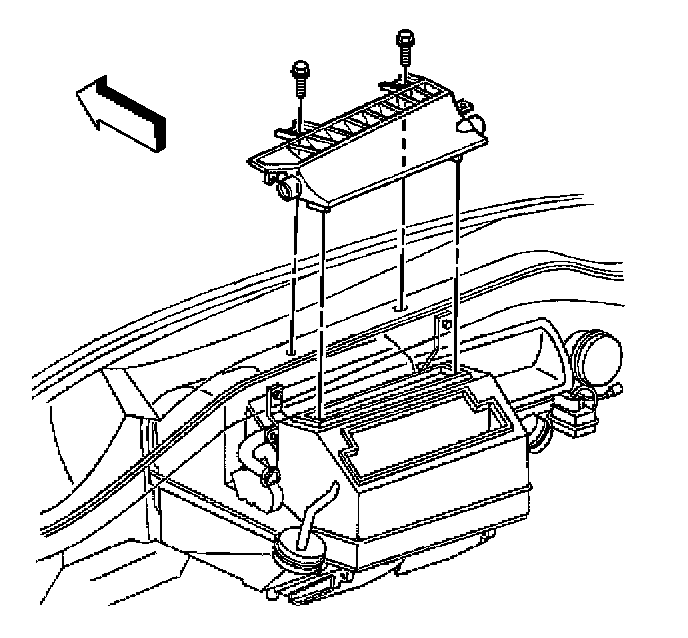 3. Install and align the windshield defroster duct to the HVAC module opening and the IP upper support beam.