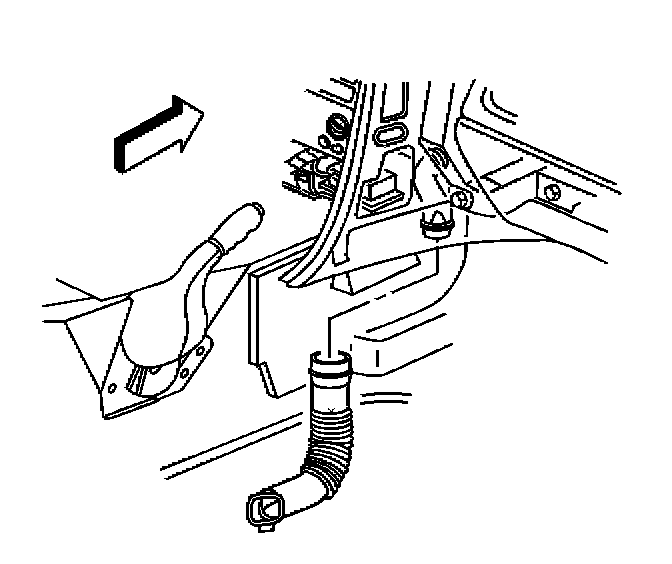 17.1. Depress the duct retaining tab and remove the duct from the ignition switch housing bracket.