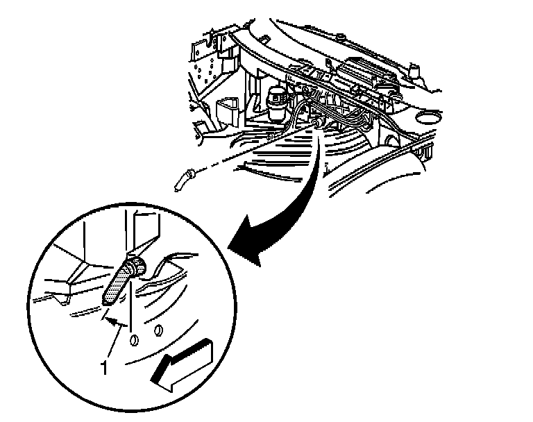 7. Connect the IP harness vacuum supply line (1) to the HVAC module vacuum harness (2).