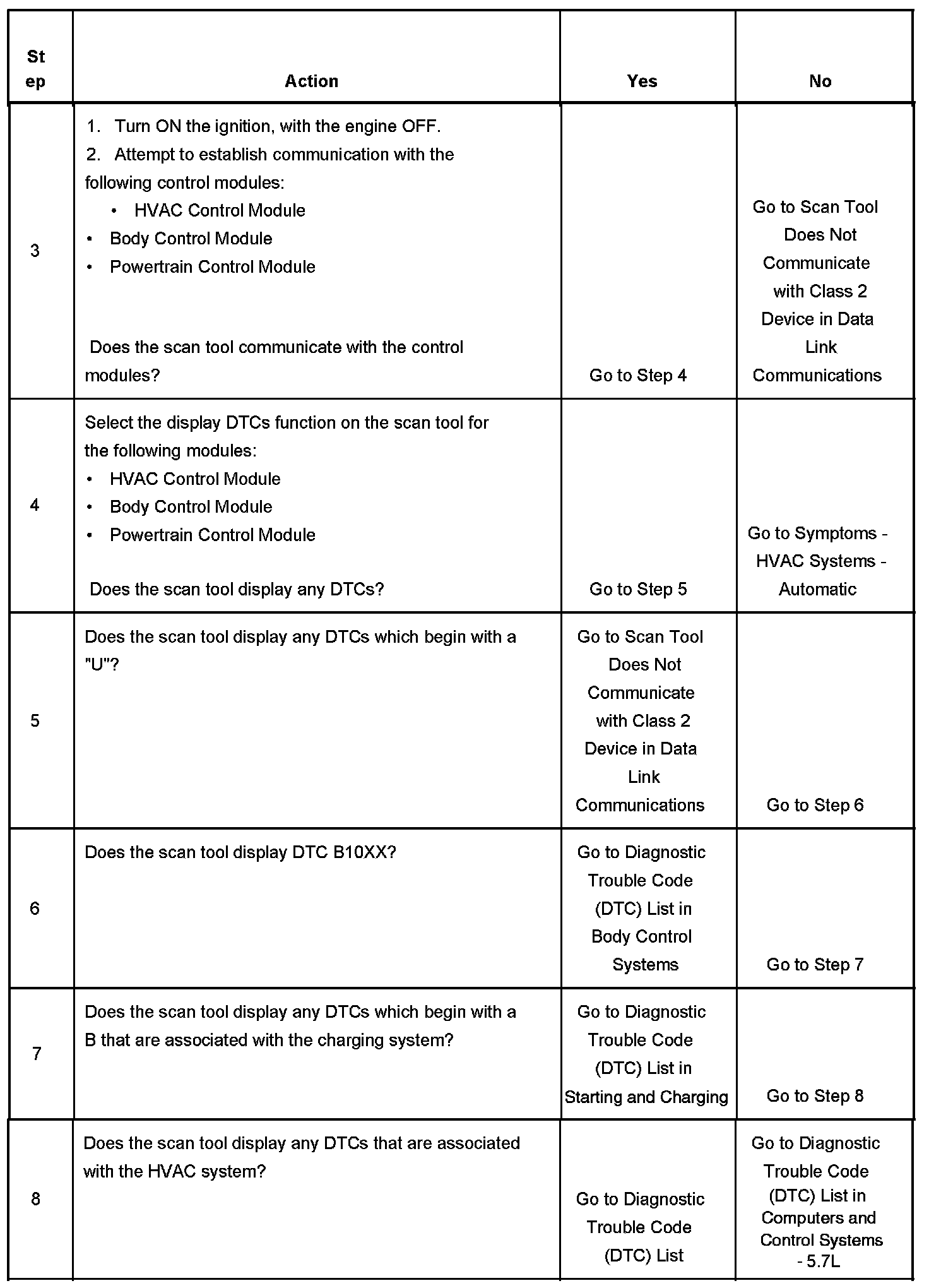 5. The presence of DTCs which begin with "U" indicate some other module is not communicating. The specified procedure will compile all the available information before tests are performed.