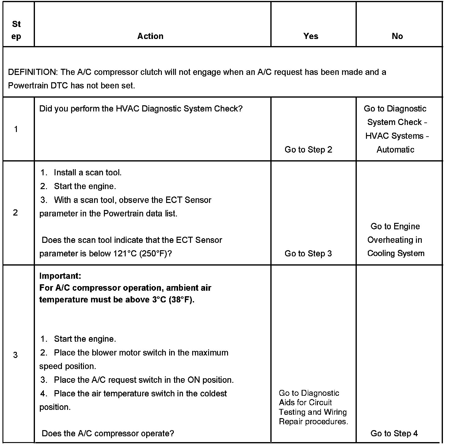2. The A/C compressor relay output is disabled if engine coolant temperature is above 121°C (250°F).
