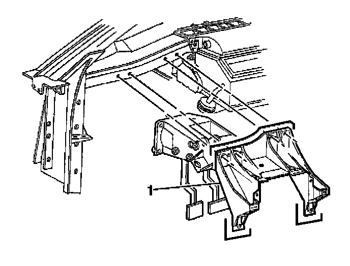 - The I/P center support bracket (3), RH side: