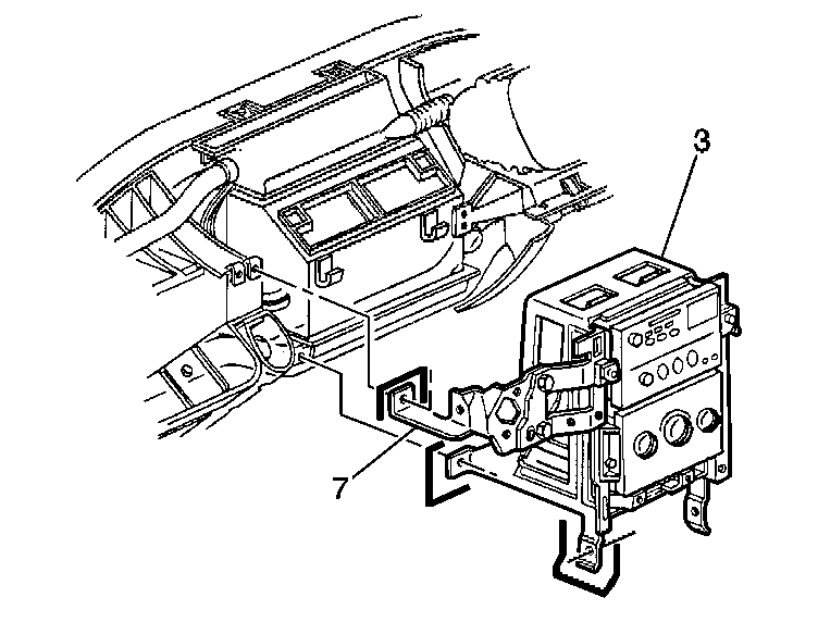 Mark the bracket (3), LH side, in relation to the I/P lower support beam and the driveline tunnel;mark the ignition switch housing bracket (7), connected to the I/P center support bracket (3), in relation to the steering column bracket.