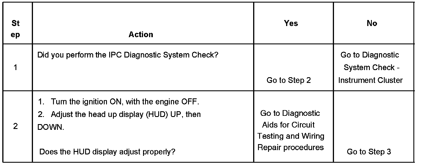 Head Up Display (HUD) - Image Adjustment Inoperative