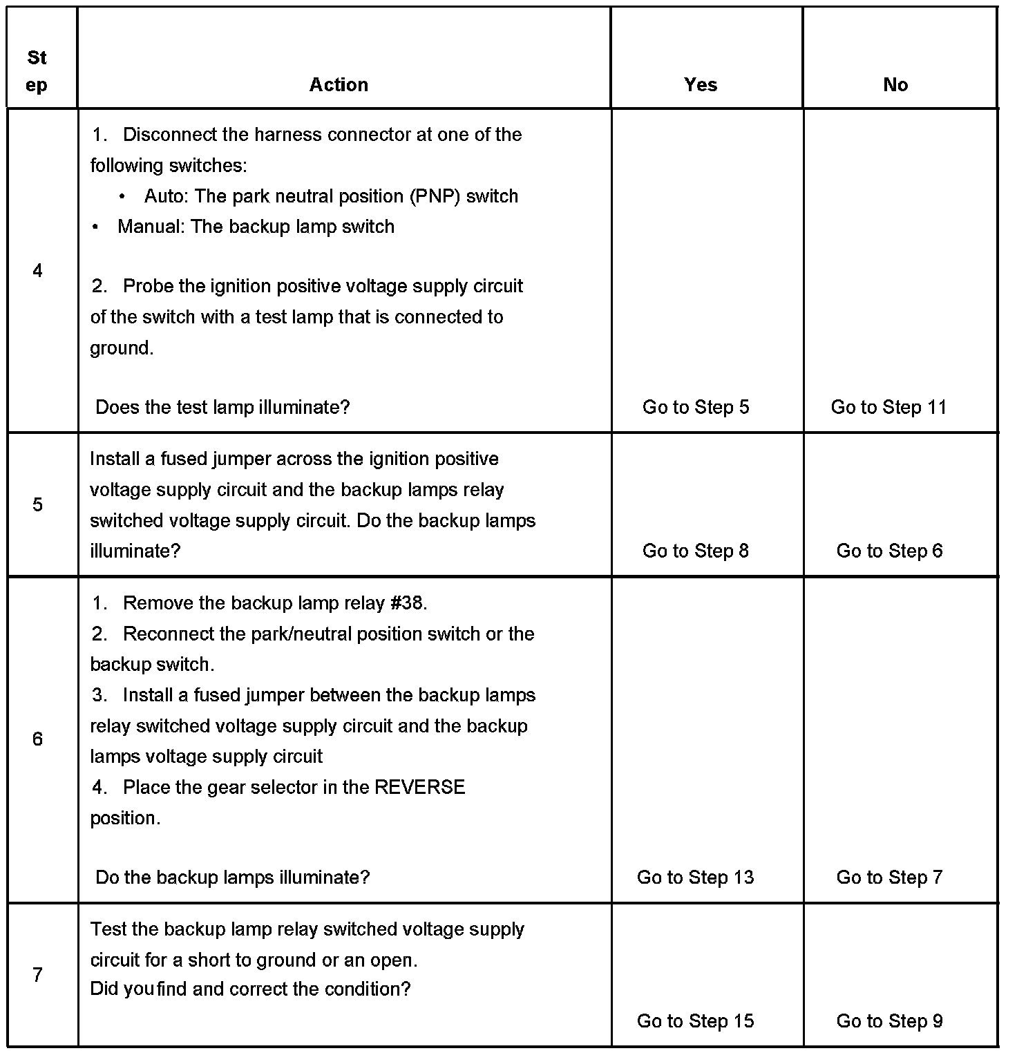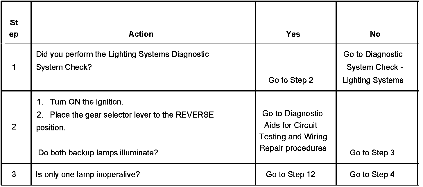 Backup Lamps Inoperative