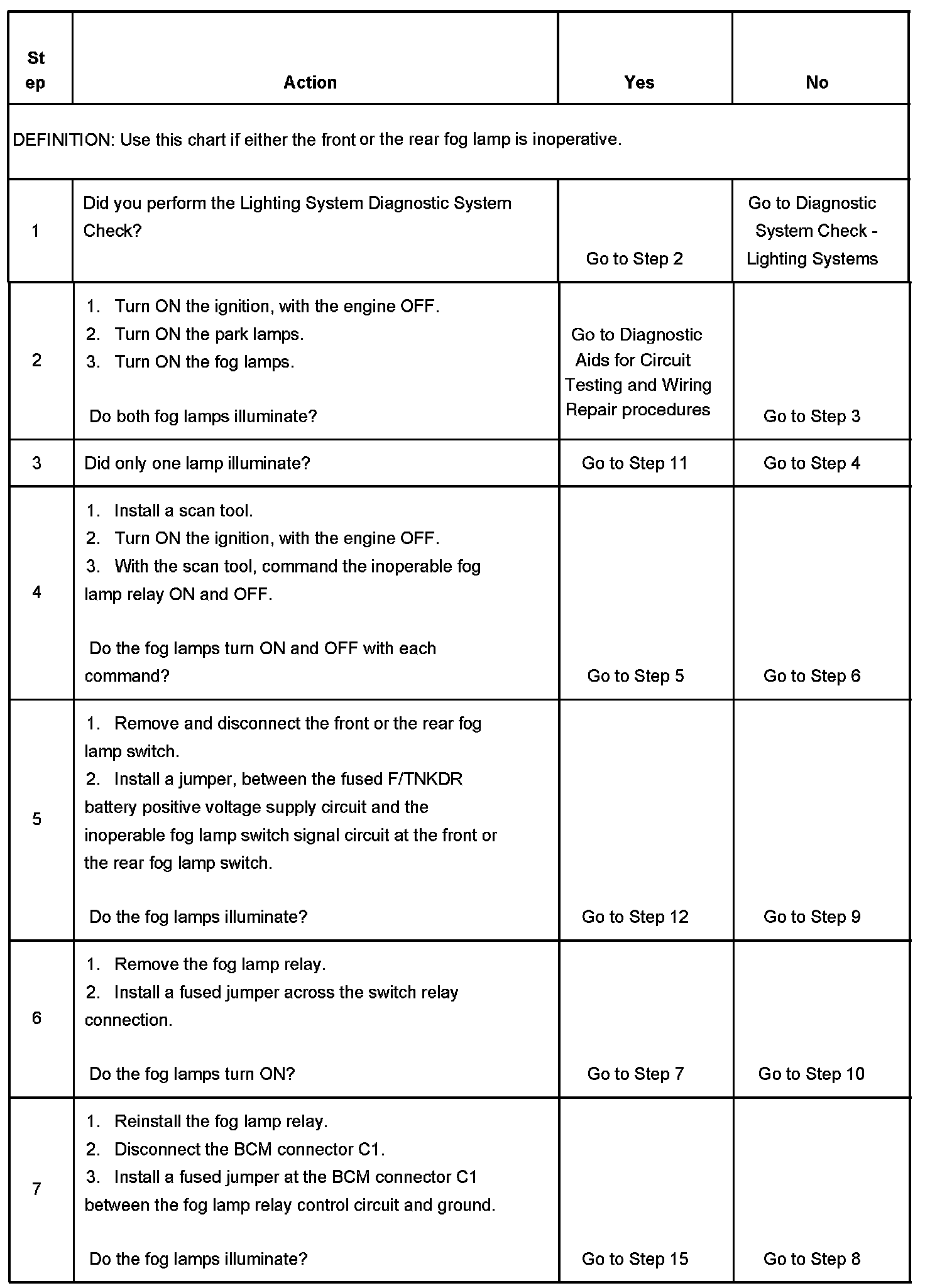 Fog Lamp Inoperative