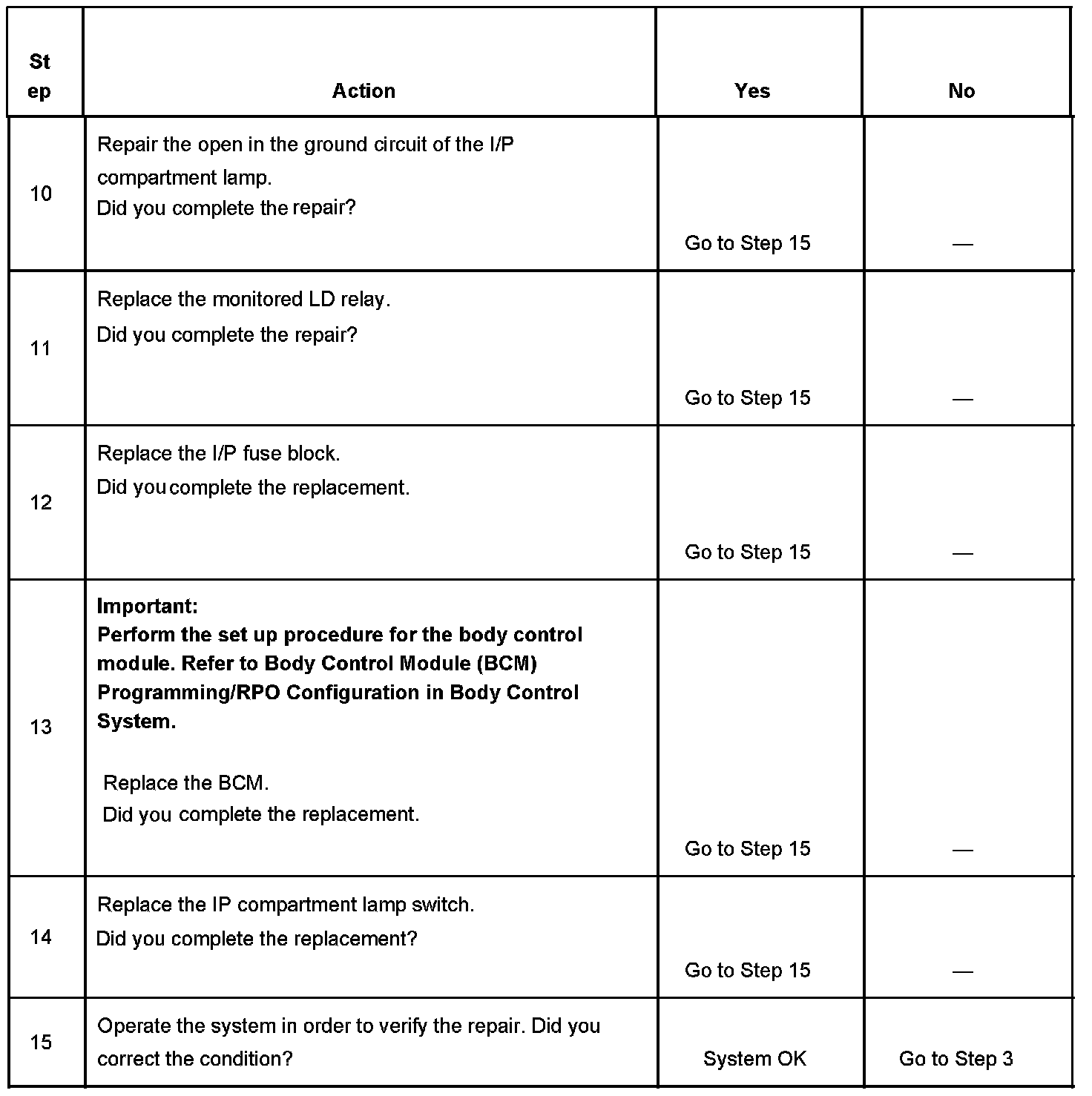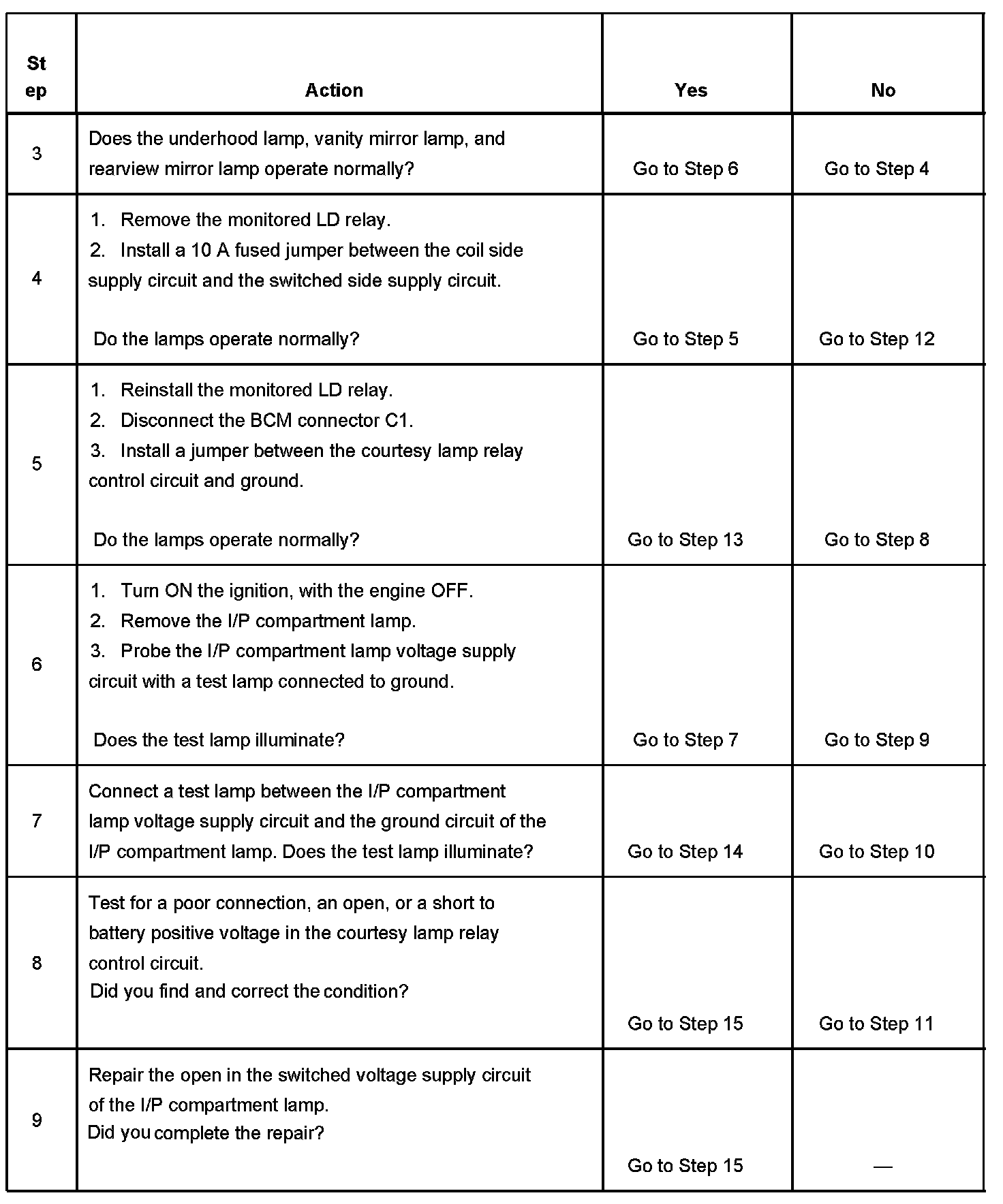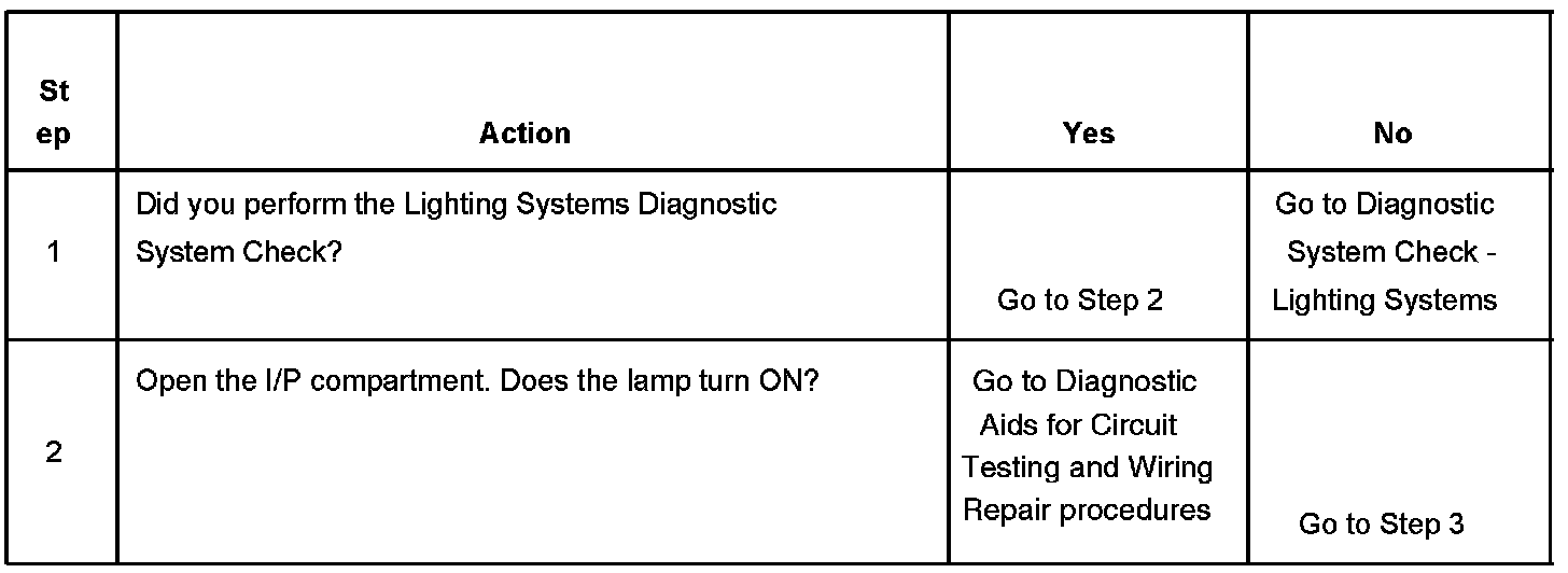 Instrument Panel (I/P) Compartment Lamp Inoperative