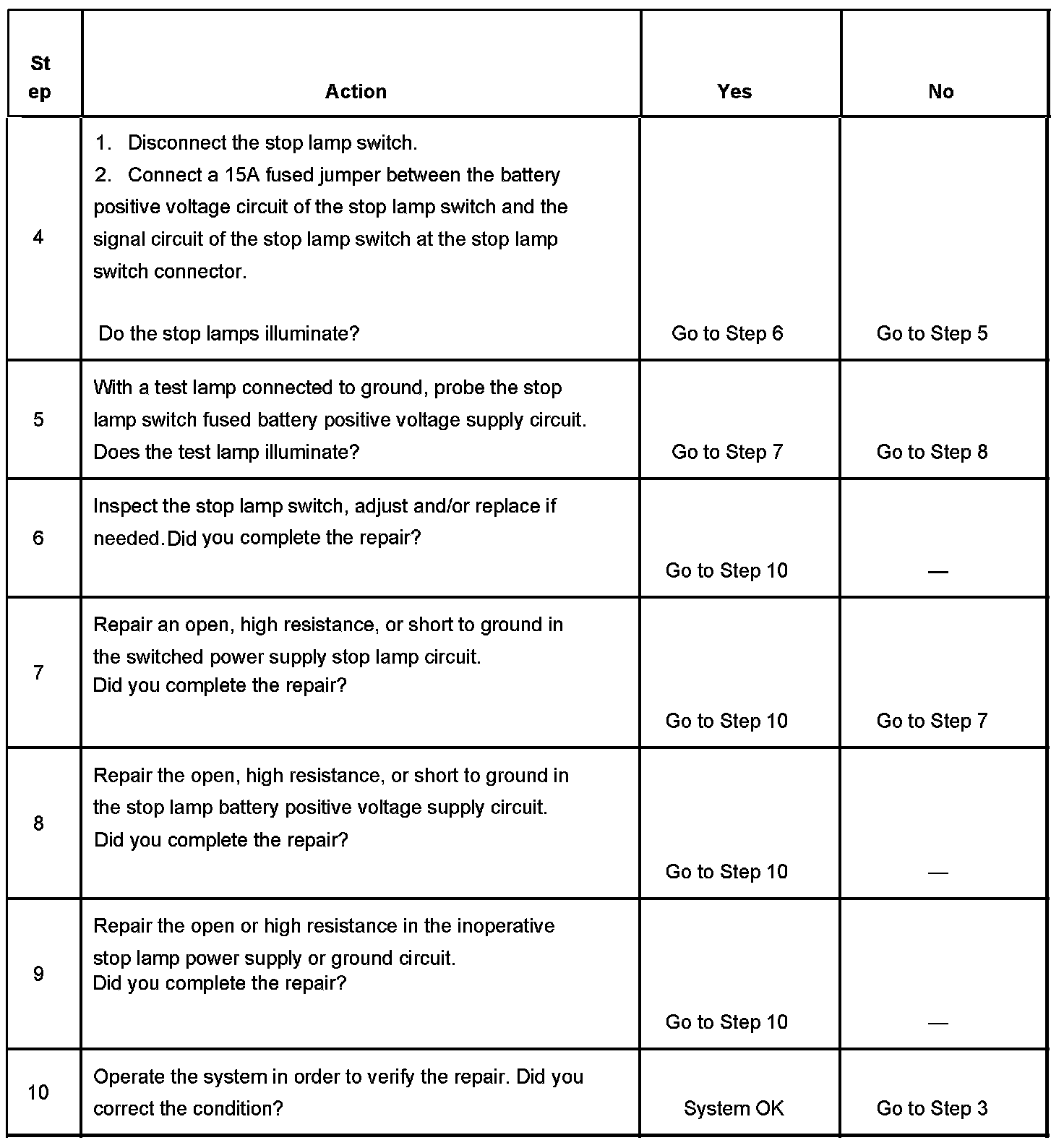 Stop Lamps Inoperative