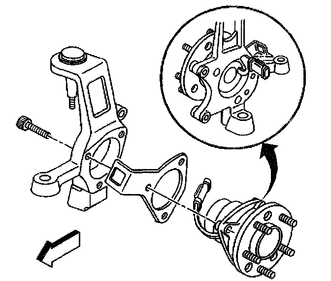 Notice: The Front and Rear Wheel Hub/Wheel Speed Sensors are not interchangeable. When you are replacing a Wheel Hub/Wheel Speed Sensor be sure to use the correct Wheel Hub/Wheel Speed Sensor part number. Do not mount the Rear Wheel Hub/Wheel Speed Sensor in the front steering knuckle. The Rear Wheel Hub/Wheel Speed Sensor features a splined hole through the center of the bearing, which mates to the drive axle. The Rear Wheel Hub/Wheel Speed Sensor requires the support of the drive axle and the drive axle nut clamped joint to properly carry the vehicle loads. Mounting the Rear Wheel Hub/Wheel Speed Sensor in the front steering knuckle can cause bearing failure and possible damage to the vehicle.