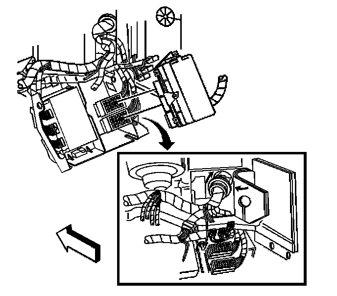 5. Disengage the retaining clip from the outboard side, twist the electrical wiring block, and pull outward.