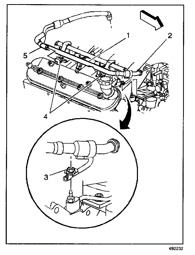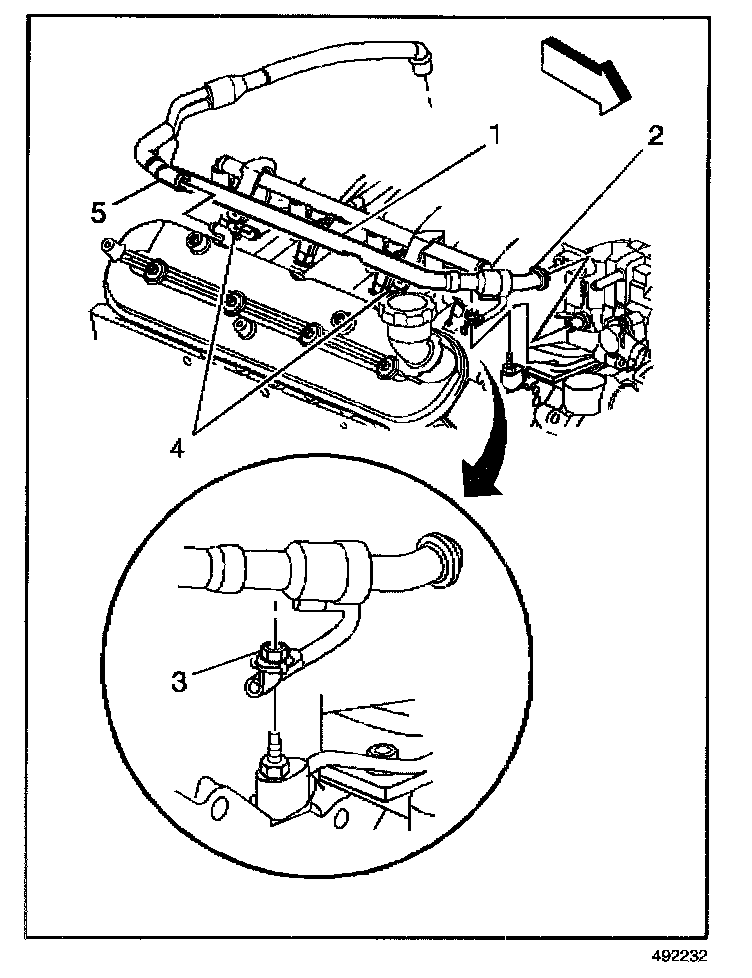 5. Remove the PCV hose (5) from the right bank port.