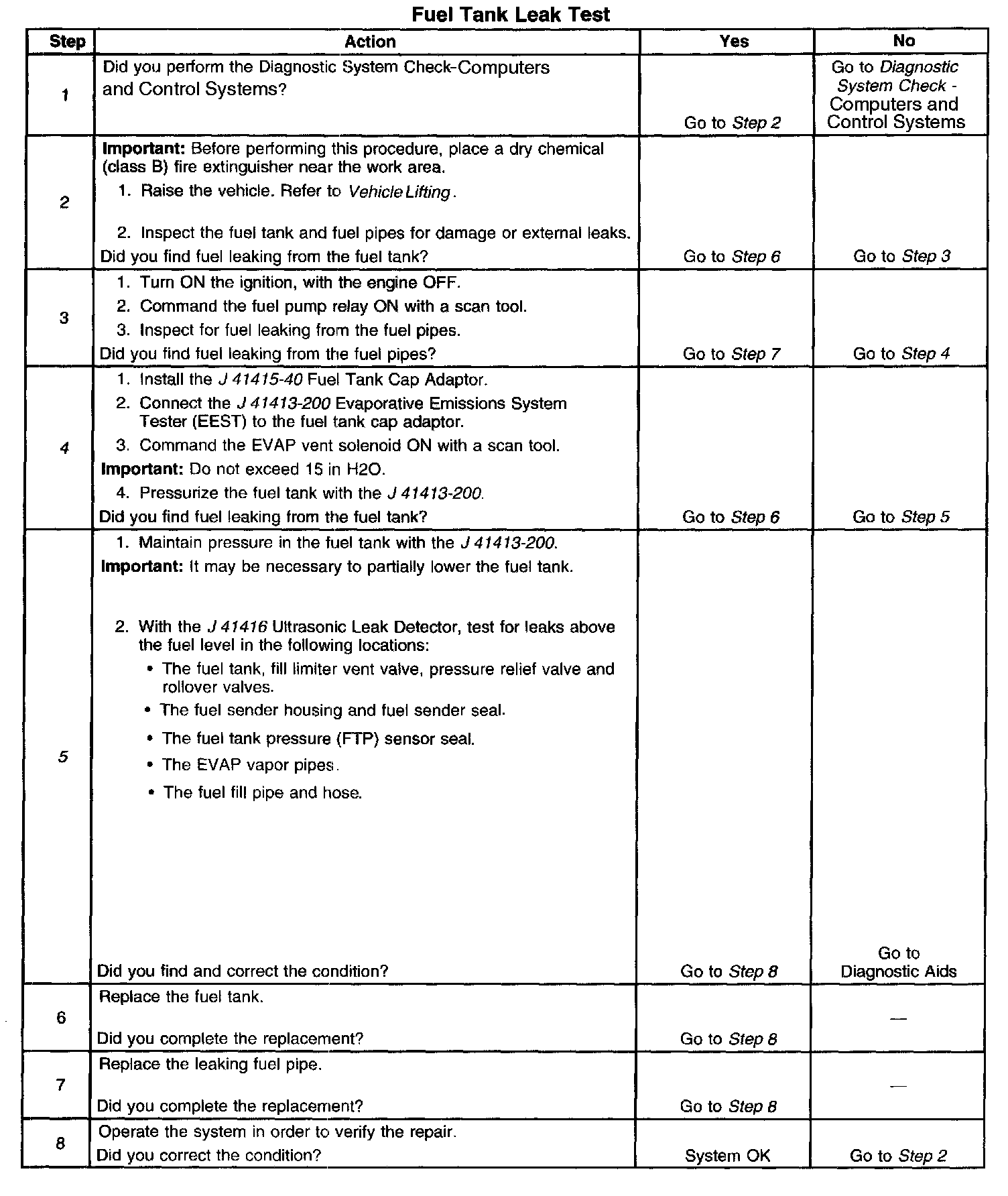 5. This step locates fuel vapors escaping above the fuel level in the fuel tank.
