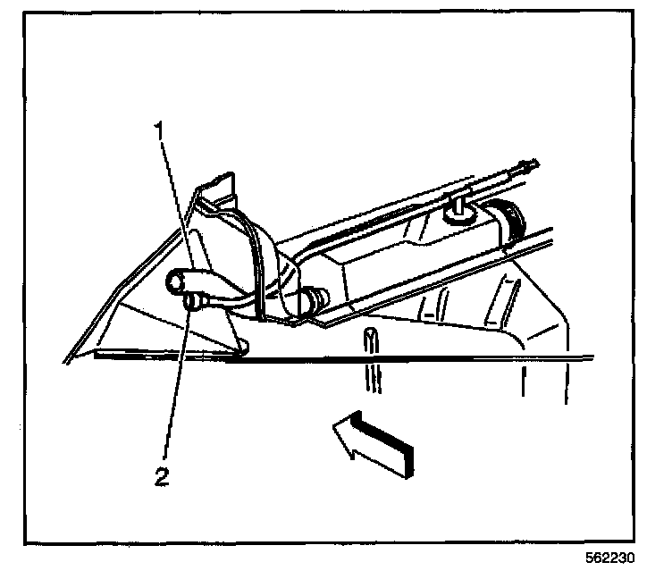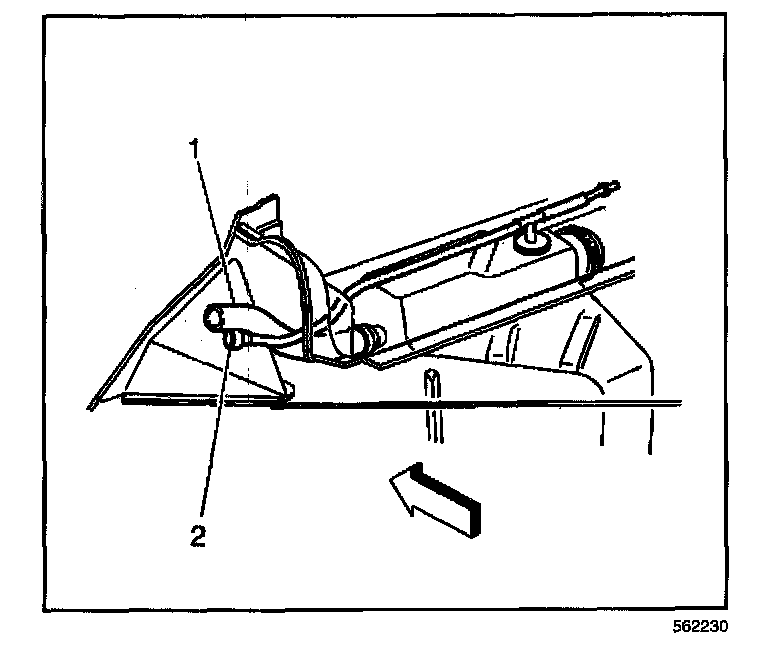 2. Remove the fuel fill hose (1) from the fuel tank.