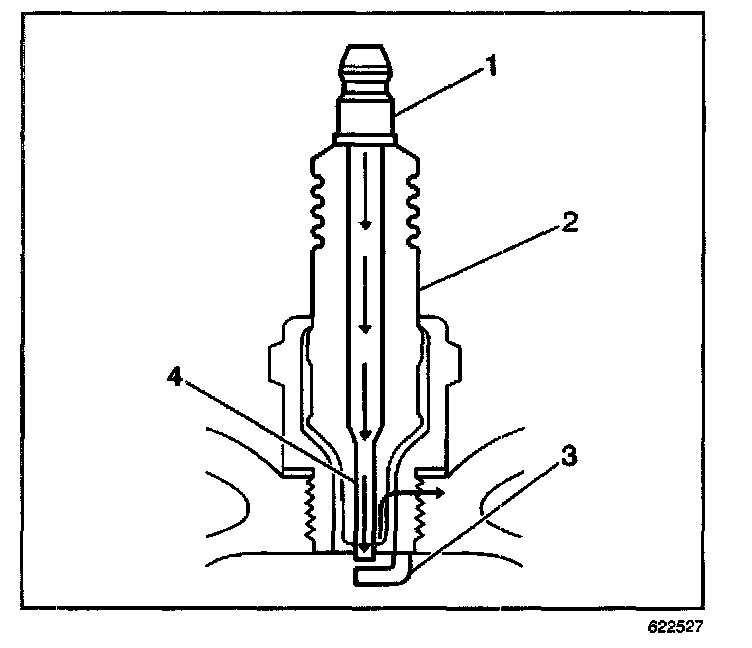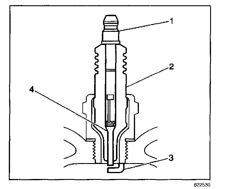- Inspect for the correct spark plug torque. Refer to Ignition System Specifications. Insufficient torque can prevent correct spark plug operation. An over-torqued spark plug, causes the insulator (2) to crack.