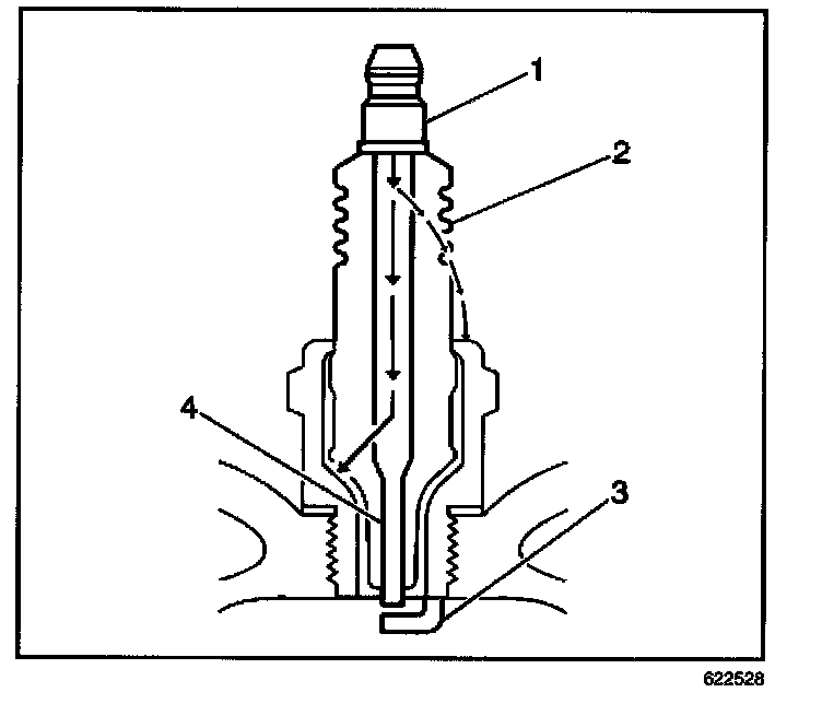 - Inspect for a broken, worn, or loose center electrode (4) by shaking the spark plug.