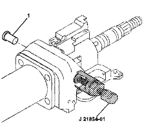 8. Remove the 2 pivot pins (1) from the steering column support assembly using J21854-01.