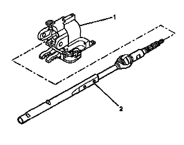 12. Remove the steering shaft (2) from the steering column tilt head housing assembly (1).